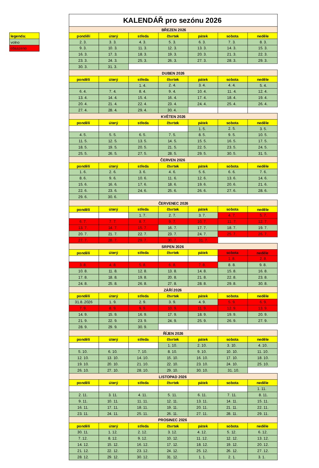 PRÁVĚ PROBÍHAJÍ REZERVACE NA SEZÓNU 2026 - CENÍK